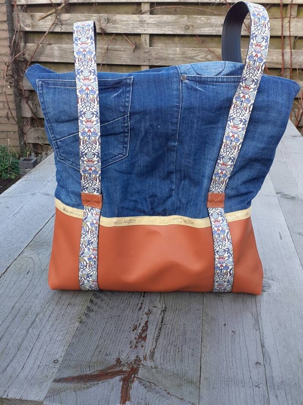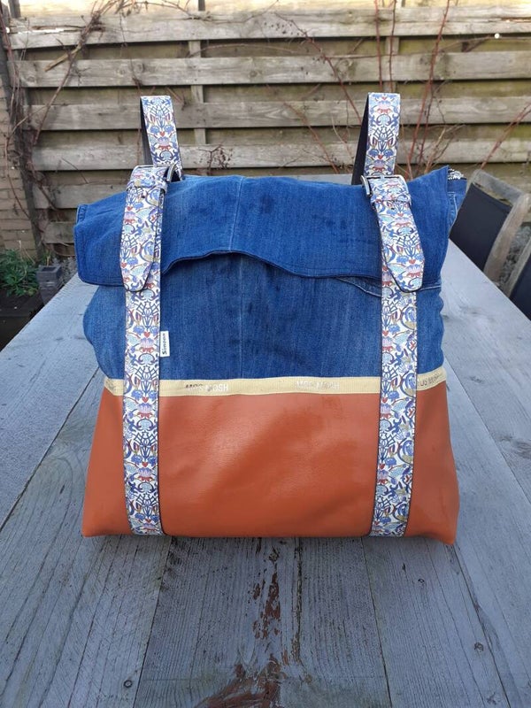 Originele rugtas gemaakt van oudespijkerbroeken en riemen. Heb je oude kleding die wil hergebruiken ik kan er een mooie rugzak of schoudertas van maken. Vraag naar de mogelijkheden.